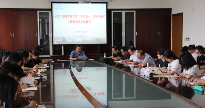 9月12日下午,美剧屋 在综合楼404会议室召开了“不忘初心、牢记使命”主题教育动员部署会,院党委书记王华传达学校主题教育部署会的精神,对美剧屋 的开展和落实主题教育活动进行了部署。