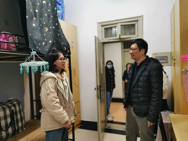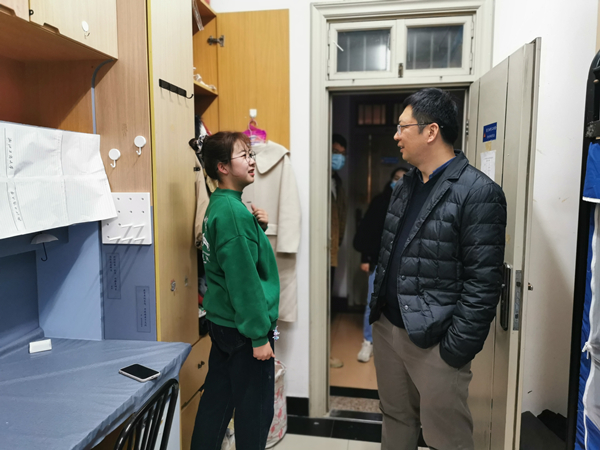 在毕业生寝室,郑书记对同学们的毕业论文、升学就业等情况进行了了解,他勉励同学们克服疫情影响,要不畏困难、迎难而上,积极准备考研复试、求职就业等。他表示,同学们在学习生活中遇到困难要及时向年级辅导员、专业老师反映,学院老师会为同学们的成长成才保驾护航。