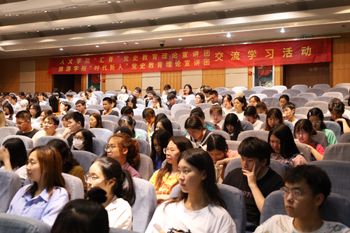 6月9日,在党的百年华诞即将到来之际,人文学院和旅游学院于图书馆二楼报告厅联合开展党史学习教育主题党日活动。人文学院党委书记郑晓东,旅游学院党委书记郑群雄、党委副书记姜兵,金融学院党委副书记鲍碧丽出席本次活动,人文学院、旅游学院党史教育理论宣讲团成员和师生代表参加活动。