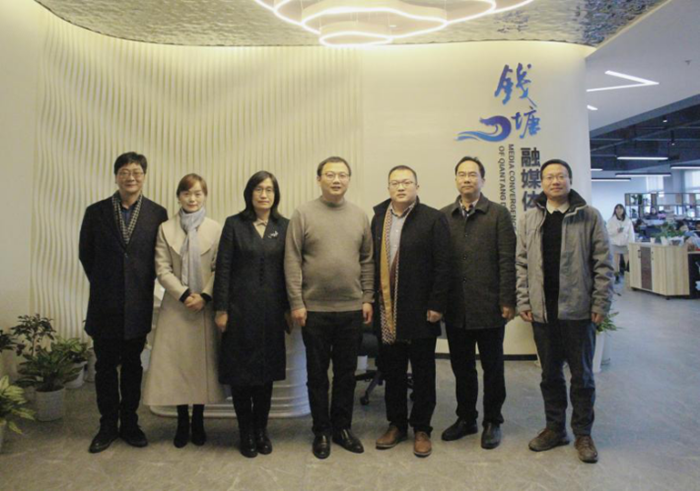 2021年11月23日,校党委委员、宣传部长丁一志,管理工程与电子商务学院党委书记、跨境电商学院执行院长伍蓓,校公管处副处长宋志军,美剧屋 副院长李蓉,美剧屋 李骏、李华金老师一行前往杭报集团钱塘融媒体中心(即钱塘区新闻文化传媒中心)调研。钱塘新区区委常委、宣传部长李鹏,钱塘区新闻文化传媒中心主持工作副主任茅徐锃、综合管理办副主任杨喜喜、新媒创意部副主任范莹颖、媒资品宣部副主任蒋王儿、新闻事业部副主任王妍接待我校一行。