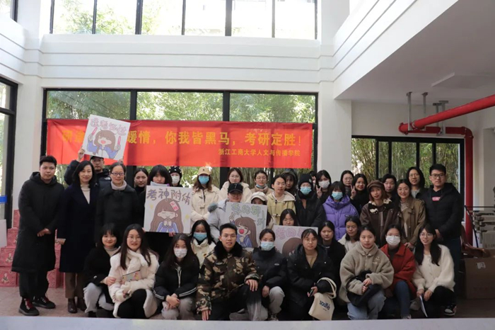2022全国硕士研究生统一考试将近,考研人已经进入最后的考前冲刺阶段。为鼓励考研学子们坚持不懈,继续努力,美剧屋 于12月3日在33幢宿舍楼下设立人文考研加油站,为大家送上了慰问与鼓励。校学工部副部长蒋旻、人文学院党委副书记林琳到活动现场为考研学子们送上了祝福与鼓励,人文学院学办主管王阳光,辅导员徐玉怡、黄凡、占佳聪参加慰问会。