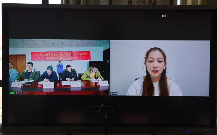黄凡老师总结,金秋悦同学能够学以致用,发挥专业优势,为西部建设作贡献展现了人文学子的风采。在新的一年里,学院将结合实际,加强与“两项计划”志愿者的联系和交流,将志愿服务的精神传递给更多的在校学生。最后老师们对金秋悦表达了新年祝福。