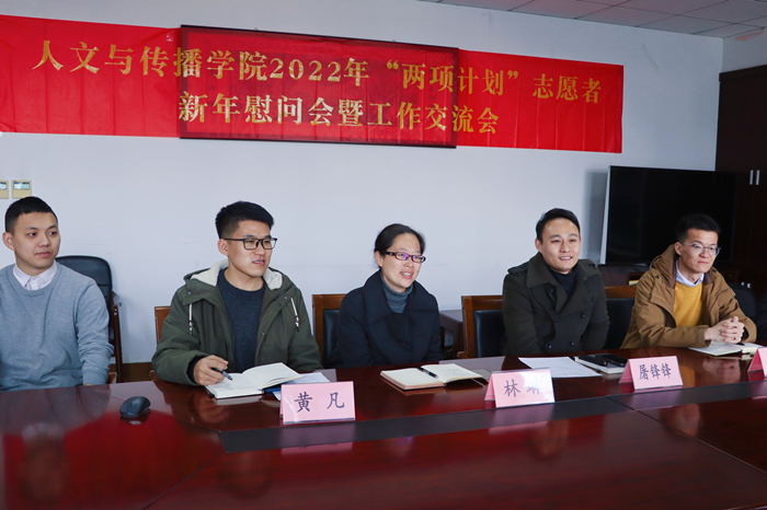 黄凡老师总结,金秋悦同学能够学以致用,发挥专业优势,为西部建设作贡献展现了人文学子的风采。在新的一年里,学院将结合实际,加强与“两项计划”志愿者的联系和交流,将志愿服务的精神传递给更多的在校学生。最后老师们对金秋悦表达了新年祝福。