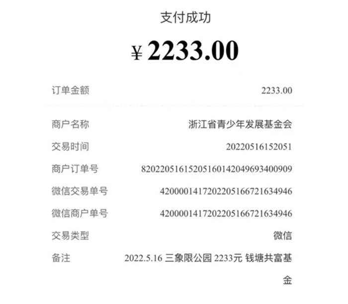 市集最后将2233元公益金全款捐赠。美剧屋 副书记林琳老师给予了肯定,她认为同学们将自己的劳动所得进行售卖,尤其是卖出的商品也是手工制作而成的,这种捐赠更能体现做公益的初心,让同学们真正理解公益的意义,以自己的能力回馈社会。