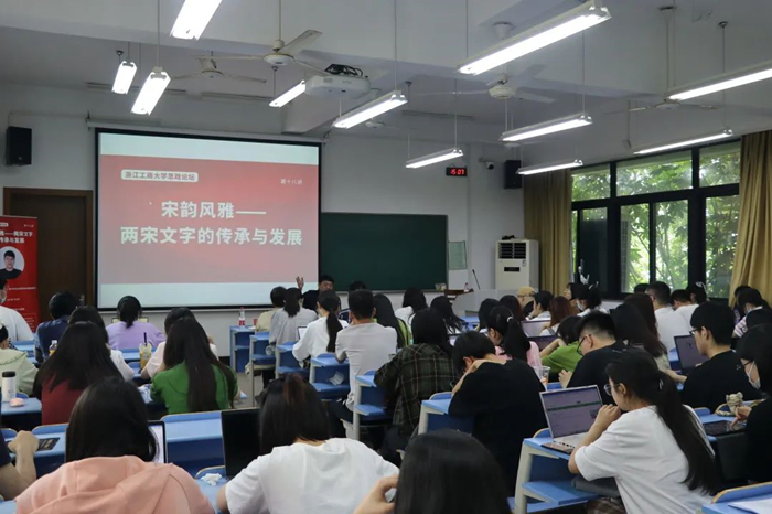 美剧屋 将“文化传承”作为学生校园文化活动开展的主线,在今年重点推进宋韵文化在校园内的传播。除宋韵文化体验会,美剧屋 承办了学校思政教育研究院的思政论坛第十八讲活动,邀请西泠印社社务委员会社团处副处长、中国书法家协会会员,来自西泠艺苑国学馆的王臻老师为同学们开展题为“宋韵风雅——两宋文字的传承与发展”讲座。