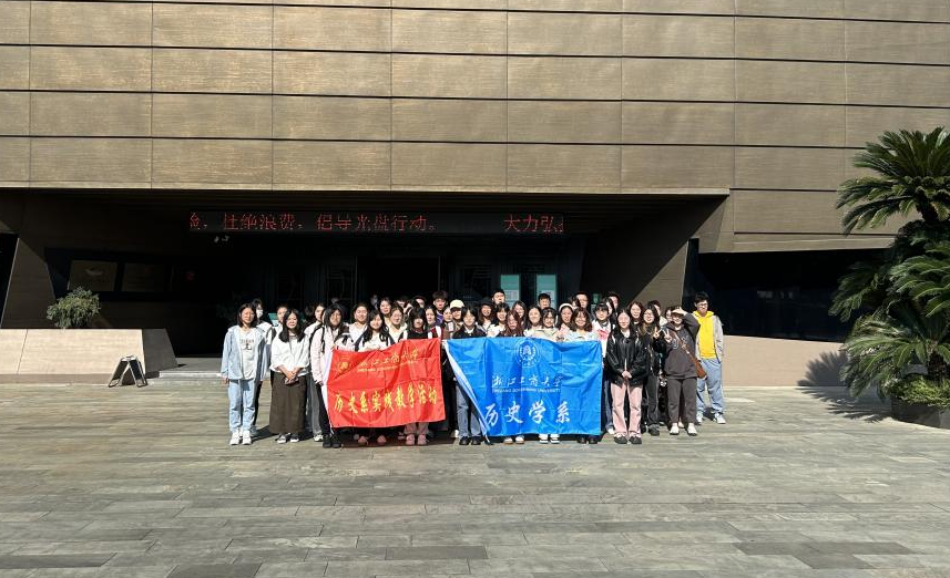 2023年10月21日上午,历史系同学在马金霞老师的带领下,前往杭州市萧山区跨湖桥遗址博物馆开展考察研学活动。