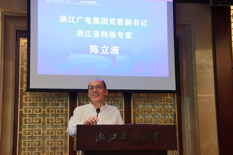 陈立波作《传播赛道的转换与传媒人才的培养》主题发言,他分析传媒行业目前面临着“百年未有之大变局”的巨大转折,现在的传播环境面临着去中心化、碎片化、多元化的新格局,传统媒体逐渐从舞台上退场。