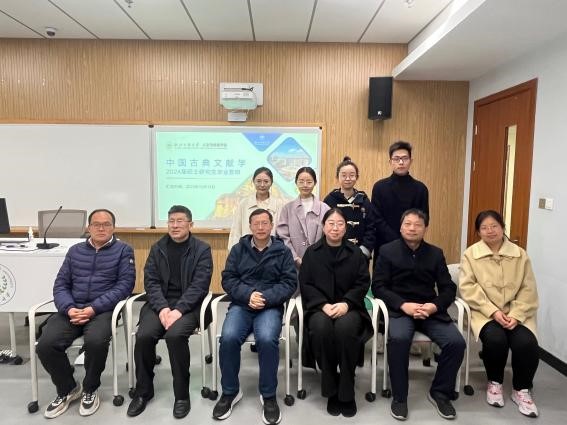 中国古典文献学专业于教学楼A210研讨室开展答辩,出席的答辩委员会成员有徐立望教授、宫云维教授、张新朋教授、刘伟教授、郑南副教授、张春国副教授。