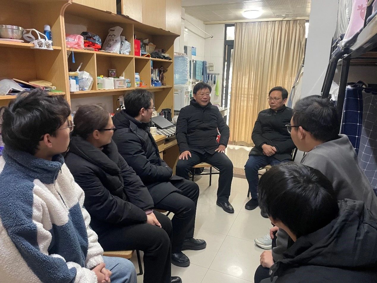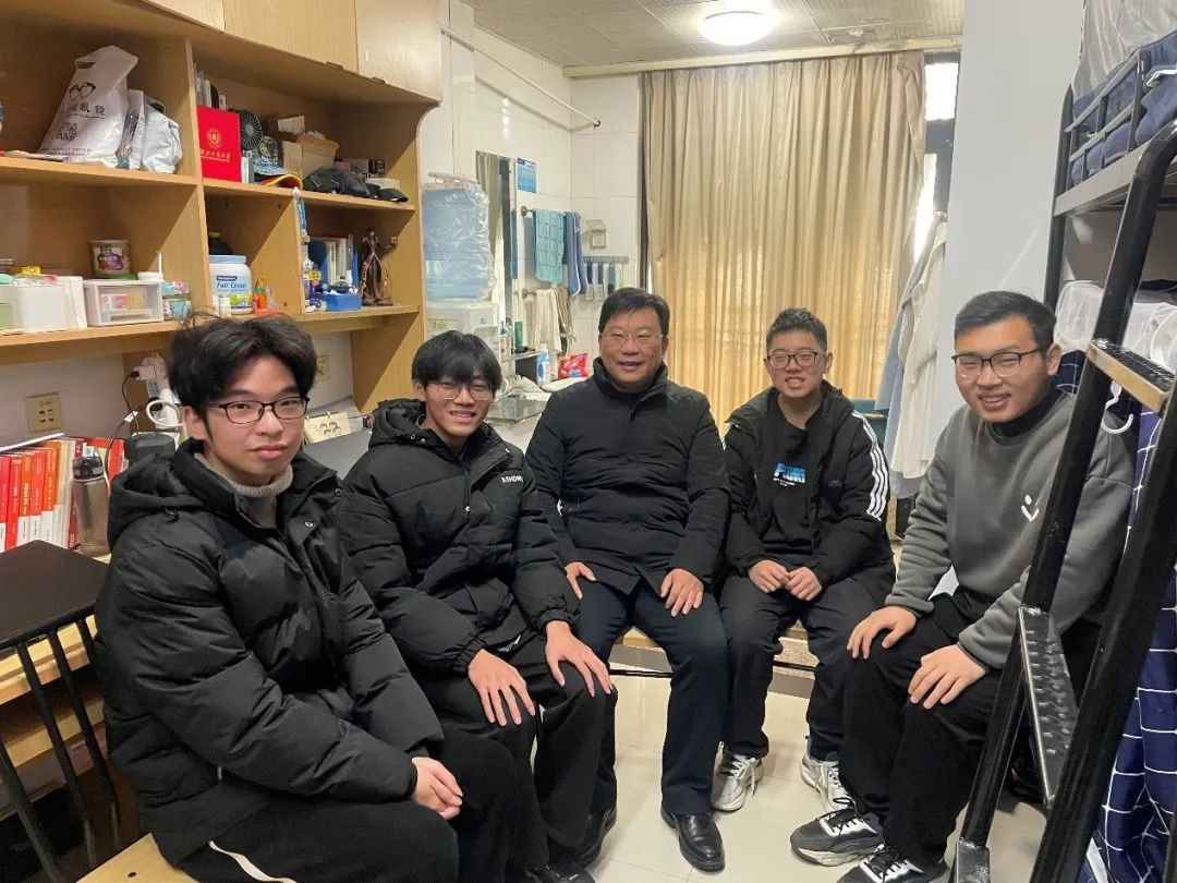 胡金生书记非常关心同学们的学习生活情况,了解到有2名同学来自广西和黑龙江,关切地询问他们是否适应杭州的冬天,细心地了解寝室空调和热水使用情况,并认真听取了同学们关于专业前景、未来规划等情况的介绍。看到同学们朝气蓬勃、满怀自信,胡金生书记十分欣慰。他表示,学校向来最关心同学们的生活和学习,希望同学们能够珍惜在校时光,坚定信心、努力学习、开拓创新,不断提高专业技能和素质,保持敏锐的观察力和创新意识,时刻关注行业动态,尝试从不同的角度去思考和解决问题,为未来的发展打下坚实的基础。