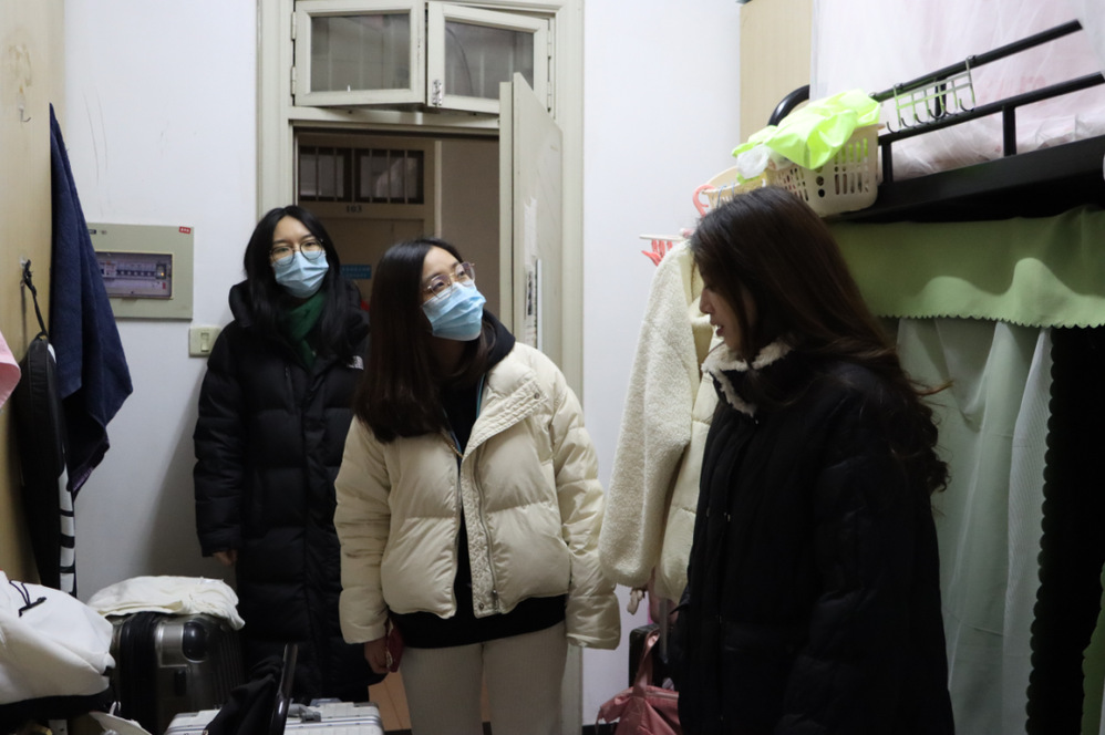 新学期伊始,春风和煦,华章又启。在学校的统一部署下,美剧屋 学生于近期有序返校。为深入了解同学们的返校情况和学期计划,学办主管王阳光、辅导员徐玉怡和占佳聪走访学生宿舍,为同学们送上新学期的暖心问候。