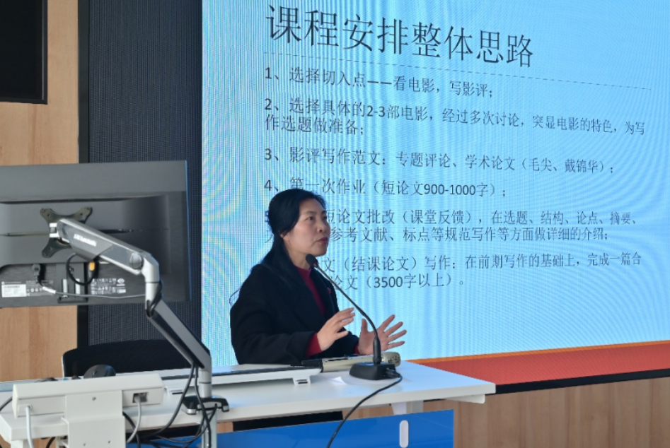 李艳梅老师也就影评这个教学主题进行了深入的分享。李老师首先强调了影评的重要性,她指出,影评不仅是对电影的一种评价,更是一种艺术鉴赏和批判性思考的能力。通过影评,同学们可以更加深入地理解电影的内涵,提升审美水平,她认为每个人都有自己独特的视角和感受,要敢于表达自己的观点才能够提升写作和沟通能力。