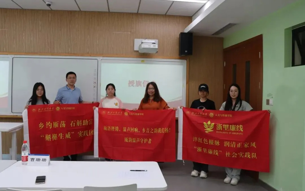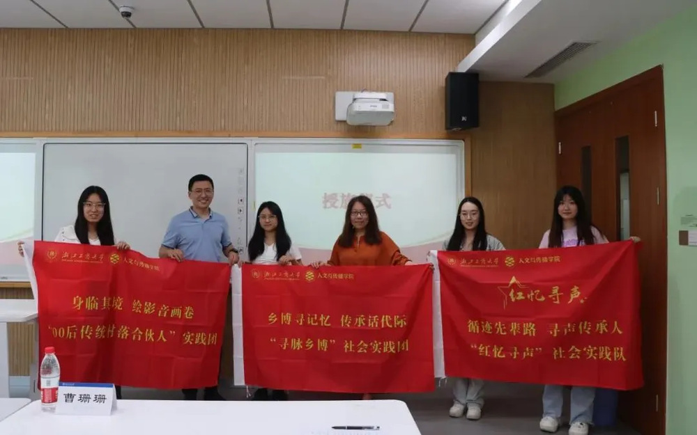 学院党委副书记张捷、学校团委副书记高仓健、学校团委副书记(兼职)曹珊珊为各实践团队负责人授旗。