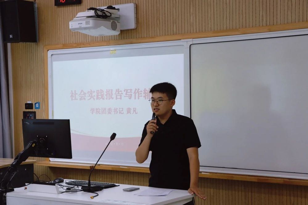 学院团委书记黄凡进行社会实践报告写作辅导。黄凡老师指出,社会实践各团队要注重实践报告的梳理和撰写,严格按照实践报告的格式规范,将专业知识融入实践总结,形成具有理论价值和现实价值的高质量报告。