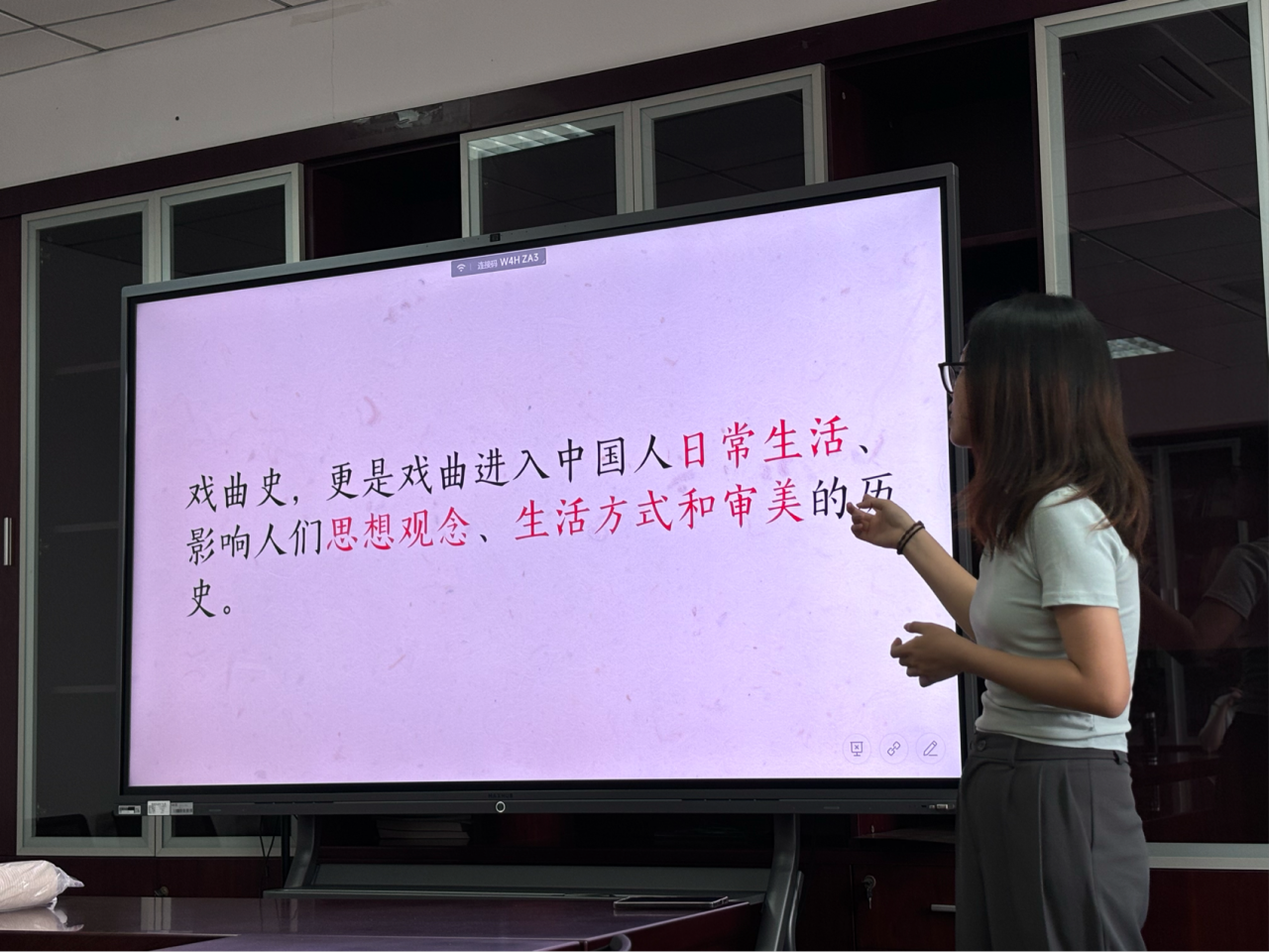 余文娇同学以“清代四川竹枝词戏曲史料”为主题,从戏曲声腔、特色戏类、艺人遭际、竹枝词的生存空间切入,全面地介绍了梳理了四川竹枝词所蕴含的戏曲史料,分析了这些史料所反映的四川地区戏曲发展的历史状态。老师们从选题的创新性、史料的丰富性、讲解的生动性等方面肯定了余文娇同学的讲述,每位老师也都从自身研究的角度出发对该选题进行了专业性的评点,让同学们了解到学术研究需要关注的不同侧面。