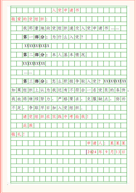 (二)申请书要求由本人手写,书写入党申请书须用钢笔、签字笔,并使用黑色墨水。使用20*20格子稿纸撰写,字数为1500以上,勿使用A4类白纸书写。书写完毕的入党申请书添加入党申请书封面(附件2),并用订书机订好,以防脱落。