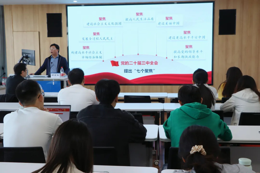 为学习贯彻党的二十届三中全会精神和省委十五届五次全会精神,鼓足师生干劲,营造风清气正的校园文化环境和育人环境,校纪委书记胡金生于11月12日下午为美剧屋 师生齐上一堂以“改革实践续篇 现代化的时代新篇”为主题的专题党课。党课由学院党委书记鲍伟主持,学院党委副书记张捷、辅导员徐玉怡以及新闻2201部分学生参加现场学习。