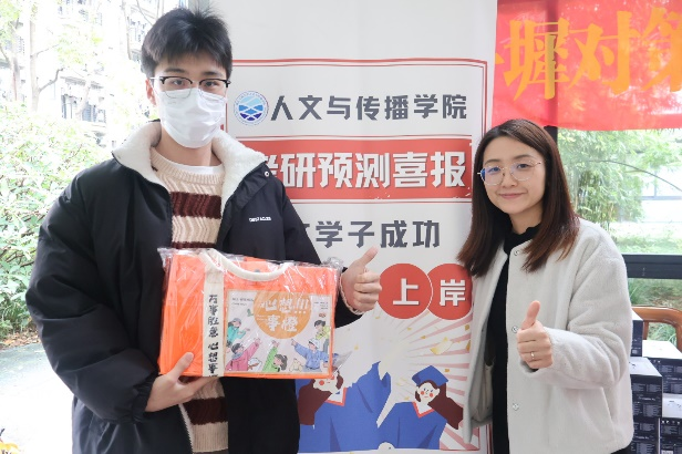 老师们为同学们送上了礼物,并合影留念,同时慰问了考研同学们的生活作息和备考情况,特别嘱咐宿管阿姨在备考期间给予考研同学更多的关照。