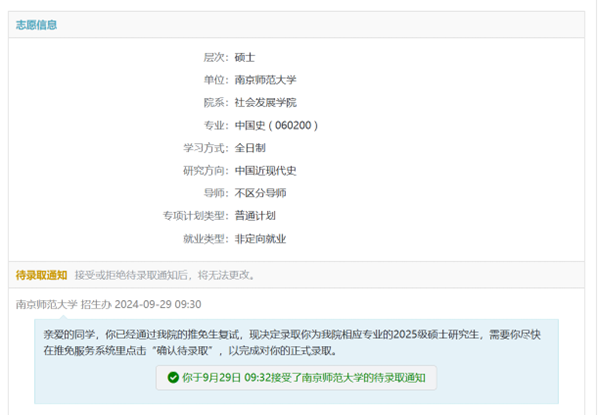 历史2101王婧静,曾任人文学院团委副书记,获国家奖学金等多项国家级荣誉表彰,现以专业第一的成绩推免至南京师范大学中国史专业。