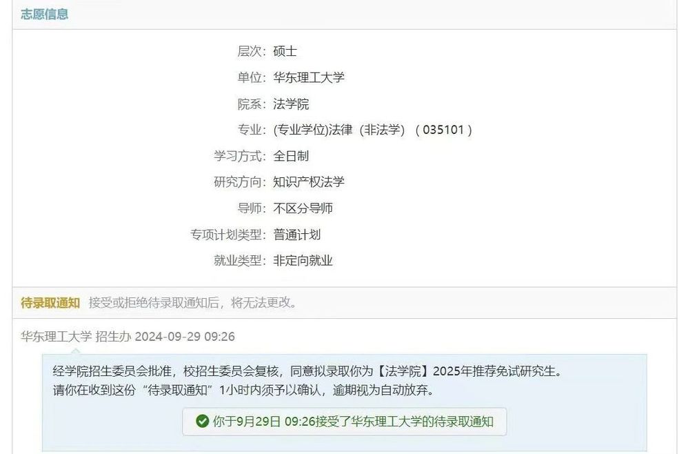 新闻2101班,王静微,保研至华东理工大学法律(非法学)专业。
