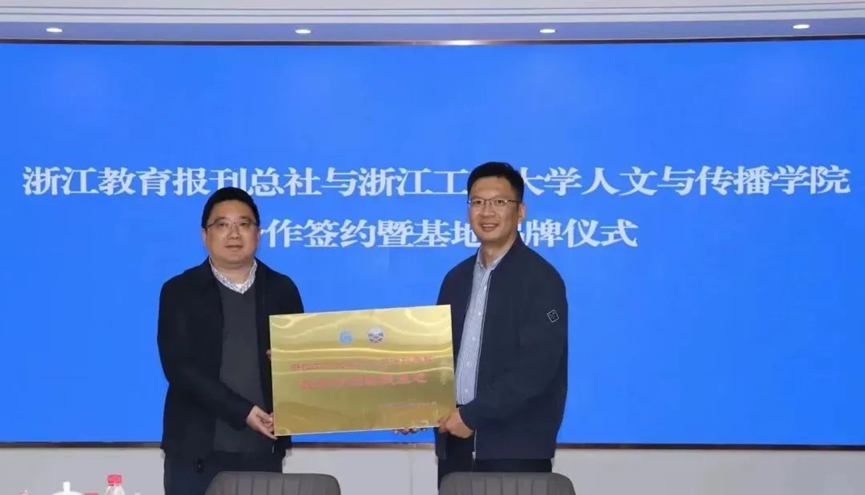 图为美剧屋 与浙江教育报刊总社进行合作签约暨基地授牌仪式