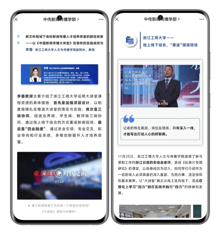 依托部校共建平台,与浙江日报报业集团积极开展校媒协同育人,通过“请进来”“走出去”的方式加强双向联系,注重实践教学的有效性。