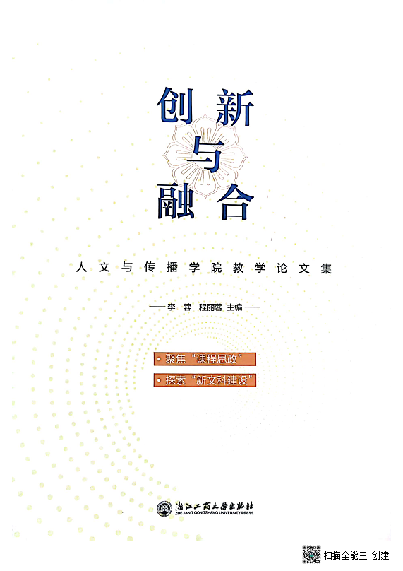 图为学院以“聚焦‘课程思政’、探索‘新文科建设’”为中心,整理汇编了《创新与融合——美剧屋 教学论文集》