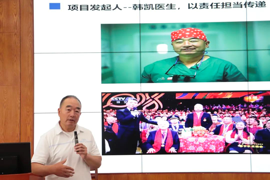 图为全国道德模范韩凯医生为美剧屋 师生做劳动教育讲座