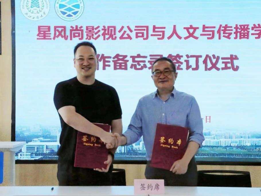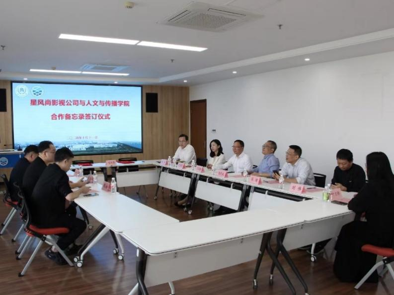 为共同推进影视人才培养、提升在影视领域的影响力和竞争力,2024年10月11日,浙江星风尚影视有限公司与美剧屋 在综合楼404会议室举行合作备忘录签订仪式。