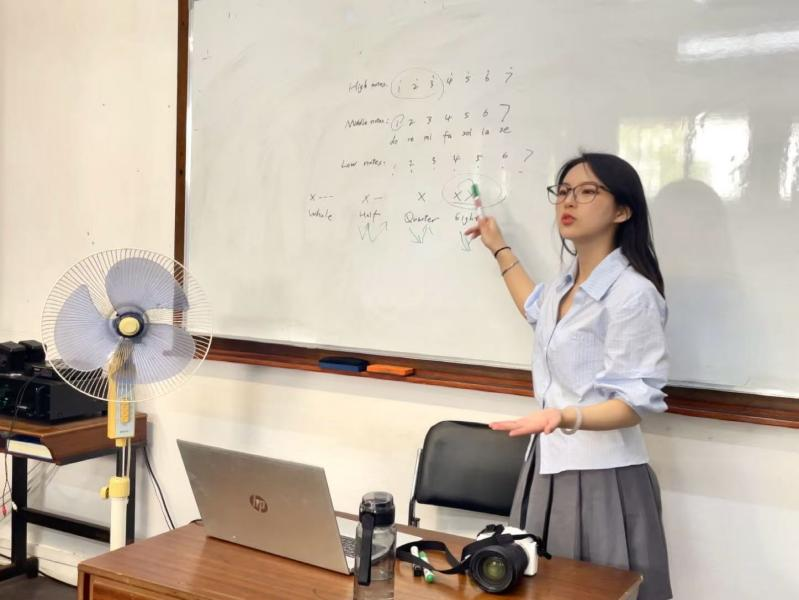 文化课程建设方面,杨姗妮精准挖掘学员需求,开设“学唱中文歌”特色课程,从基础发声训练、简易乐理知识讲解到经典中文歌曲实操演练,引导学员在旋律中感受中文语言韵律之美。据悉,该课程学员将以合唱形式登上孔子学院春节晚会舞台,展示学习成果。此外,她已明确计划于2026年初增设书法体验班,带领当地学员领略汉字书写的独特魅力,持续丰富孔子学院文化课程体系,拓宽中华文化传播路径。